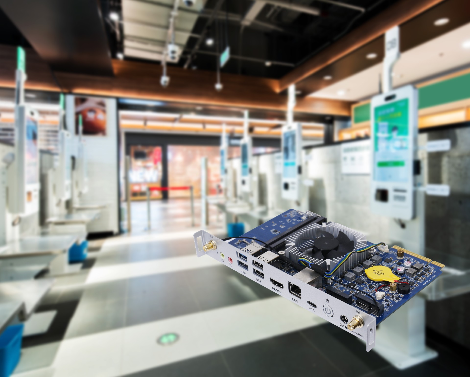 k8凯发科技SDM-L613支持2xSO-DIMM DDR5-5200 MHZ,最大支持64GB,结合1 x M-Key M.2 (2280) PCIe4.0高速NVMe SSD,DDR5工作频率通常比DDR4更高,可以在单位时间内处理更多的数据,并且耗能更低,对于像自助机这样长时间运行且需要稳定散热的设备来说,节能和散热效果更好的内存可以降低设备的能耗和热量排放。