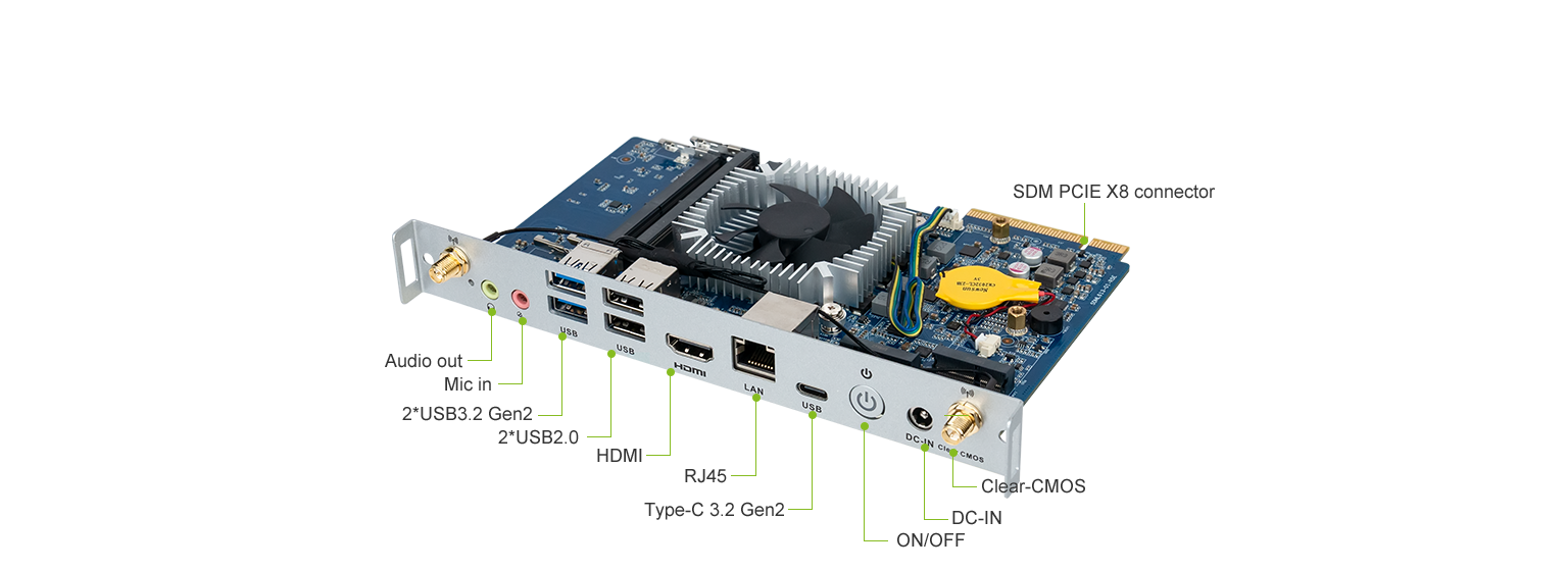 优秀的视频显示,k8凯发科技SDM-L613拥有1个HDMI (7680 x 4320 @60 Hz)接口,支持60HZ刷新率,实现8k超清显示,SDM(PCIE X8)可以传输 HDMI2.0 (4096 x 2304 @60 Hz)、DP1.2 (4096 x 2304 @60 Hz)、USB3.2 Gen1、UART、GSPI、I2C、PCIe 和 SYS_FAN 信号连接。