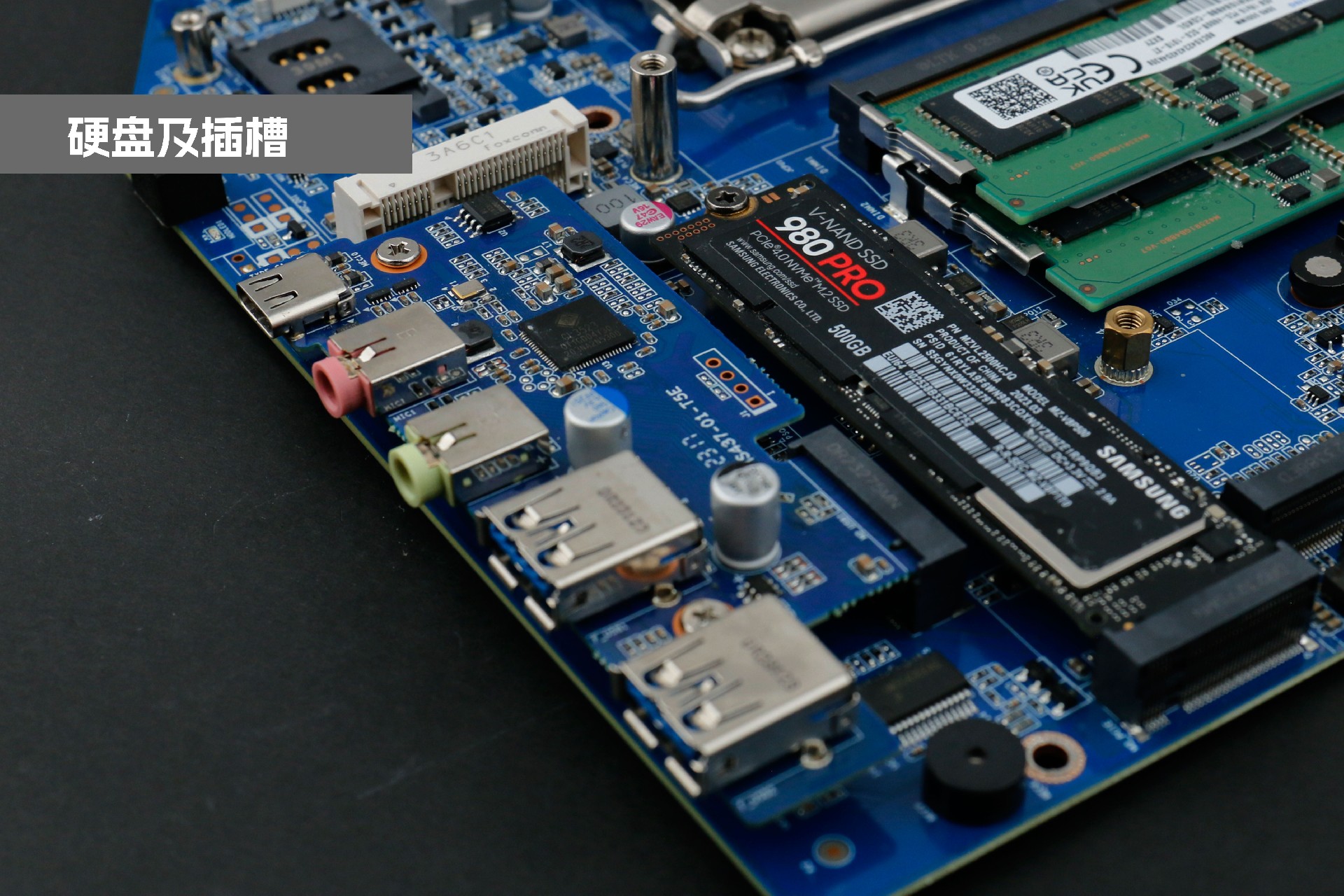 k8凯发桌面云终端Y-BOX P3主板中部是内存插槽,采用双通道笔记本内存槽设计,最大支持容量可达64GB,最高支持DDR5-5600MHz频率,比 DDR4 至高标准数据速度 3200MT/S多传输 1.75 倍,横插的形式可以减少主板的占用体积,使整体机身更紧凑,内存顶部的风扇起到高效散热的作用。