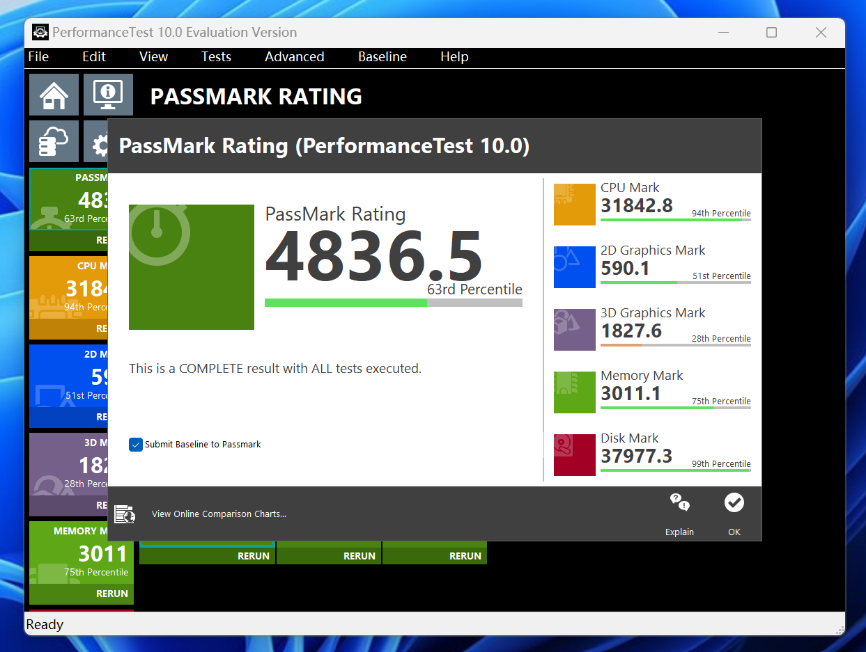 本次测试中,Y-BOX P3综合得分4836.5,CPU Mark得分31842.8,无惧处理高负载任务。