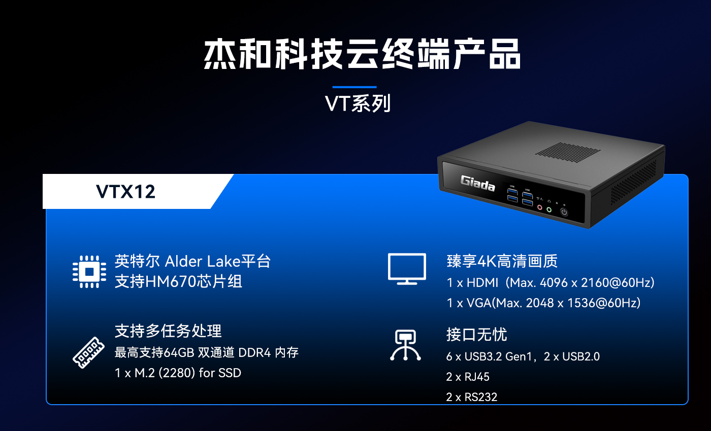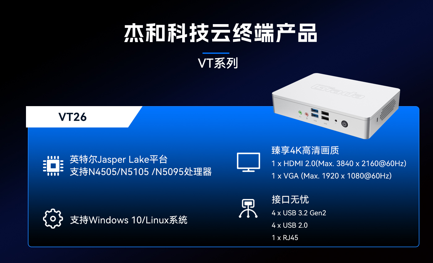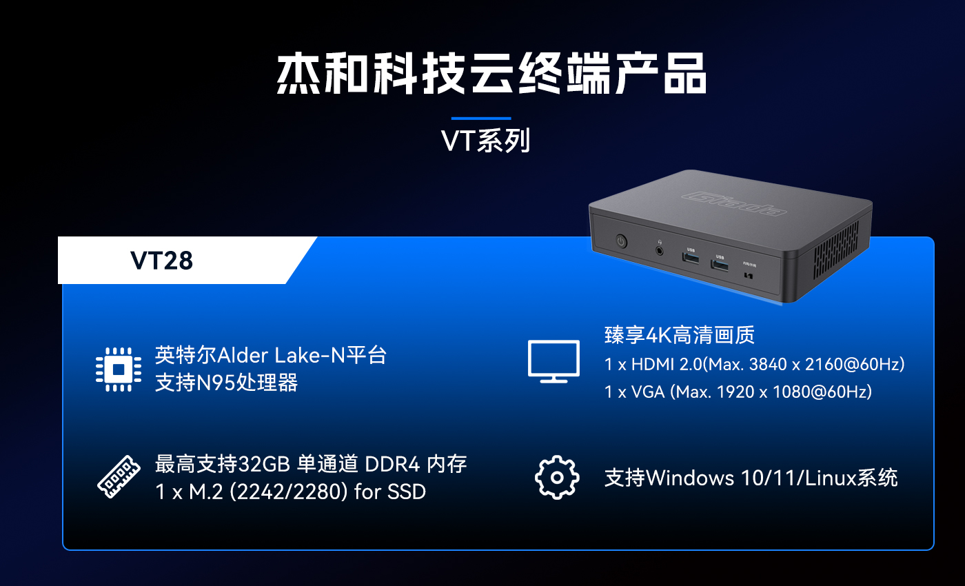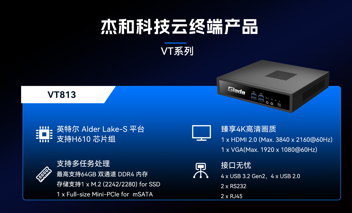 除此之外k8凯发科技云终端VT系列产品线还提供多样化的硬件配置选择,涵盖多种处理器架构、内存容量、存储设备和接口类型,满足不同应用场景的个性化需求。