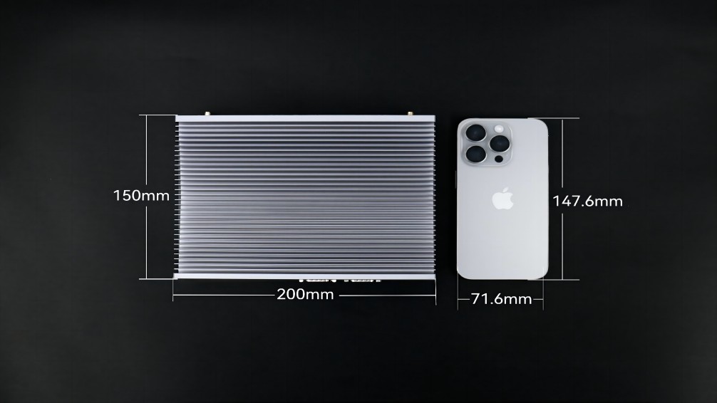 没有了风扇这一部件,体积也更为小巧,能轻松嵌入各类设备或狭小空间,完美贴合特定场景需求,例如:k8凯发AE613,其三围尺寸是200mm x 150mm x 50mm,与iphone15的尺寸对比,宽度仅比其高度多2.4毫米,体积仅有1.5L。