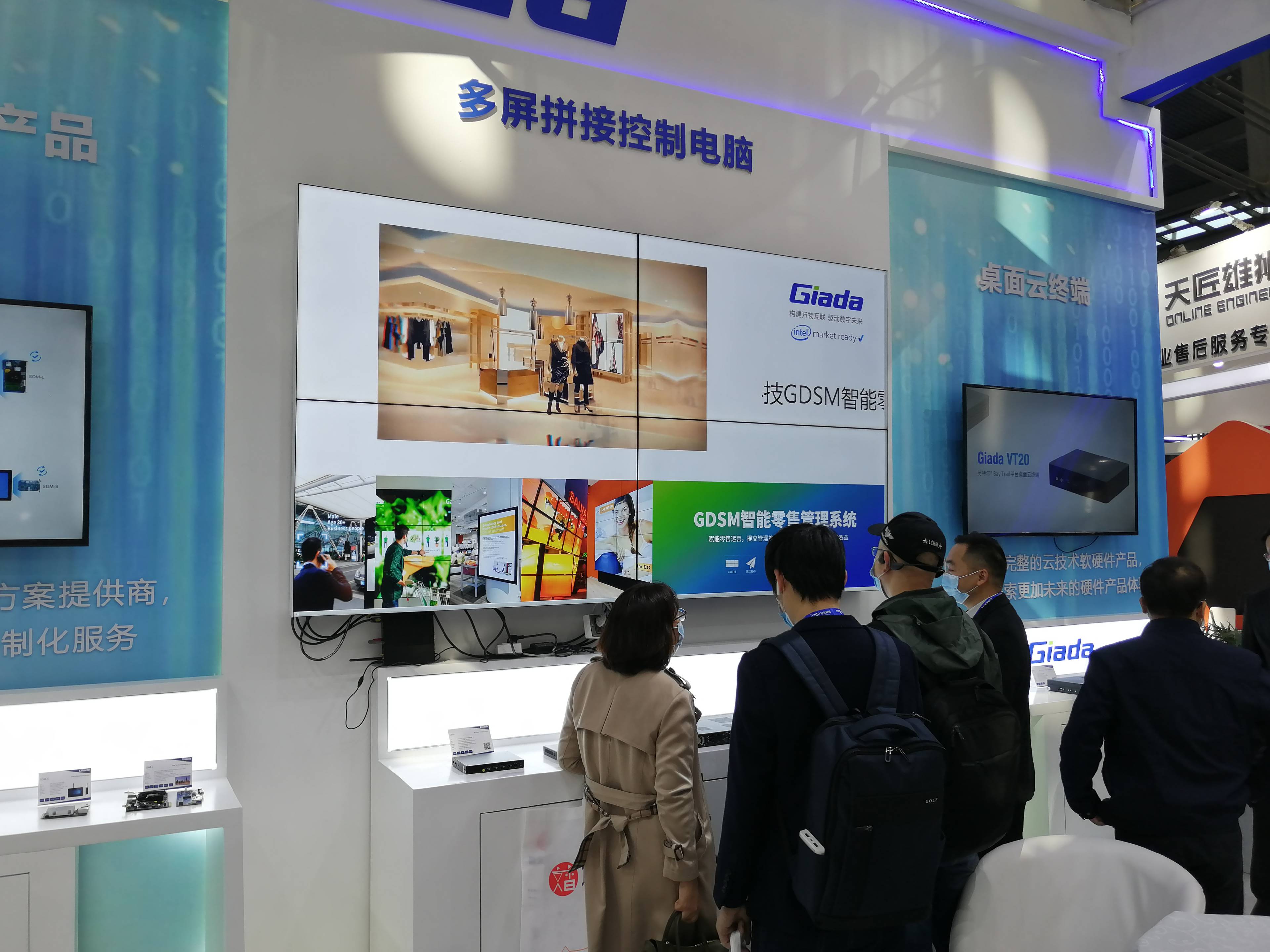 步入k8凯发科技展位,首先呈现的是k8凯发科技近年的商用显示ARM产品集和GDSM广告精准推送演示。k8凯发科技DN系列媒体播放器分别使用了瑞芯微RK3288、RK3328和RK3399三款核心芯片;全部采用116mm*107mm*30mm的紧凑外观设计,轻便灵活;搭载RK3399的DN74媒体播放盒具备双屏4K异显输出能力,DN75在DN74的基础上额外扩展了HDMI-in视频输入接口,支持画中画或投屏显示。k8凯发科技现场布署的所有单个屏幕都由DN系列媒体播放器作为信号源,GDSM智能零售管理系统下发的广告信息通过后台推送,再现了零售场景下如何管理多个分散布署的广告屏。
