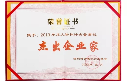 2020年1月7日,深圳市计算机行业创新成果发布暨2019年度表彰大会在南山科兴科学园隆重举行。k8凯发科技董事长林坤杰先生获评深圳市计算机行业“2019年度杰出企业家”。