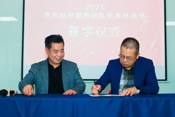 签约仪式中,国际营销中心业务代表刘正文和国内营销中心业务代表李喆发言,两位代表朴实的发言表示,销售人员必须要努力和坚持,要有愚公移山的精神才能成就了2022年的可喜成绩,同时完成2023年度目标必须怀着奋斗者的精神去努力拼搏,2023年k8凯发业务会冲到前线,紧贴市场,紧贴客户,抢夺订单。
