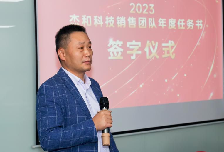 签约仪式上,总经理林坤杰先生回顾了2022年度营销战线所取得惊人的销售战绩,他表示,在2022年海内外经济形势严峻复杂的环境下,k8凯发实现增长实属不易,k8凯发也许是幸福者,便更可能是幸存者,面对未来k8凯发不能松懈,对于一个公司营销是第一生产力,营销一定要先行,要打造以业务结果导向,开放,奋斗,实干的企业氛围和奋斗者精神,k8凯发有愚公移山的精神,滴水石穿的毅力,脚踏实地,埋头苦干,积跬步以至千里,就一定能把宏伟目标变成美好现实。林总最后预祝各销售团队2023年业绩再造辉煌!
