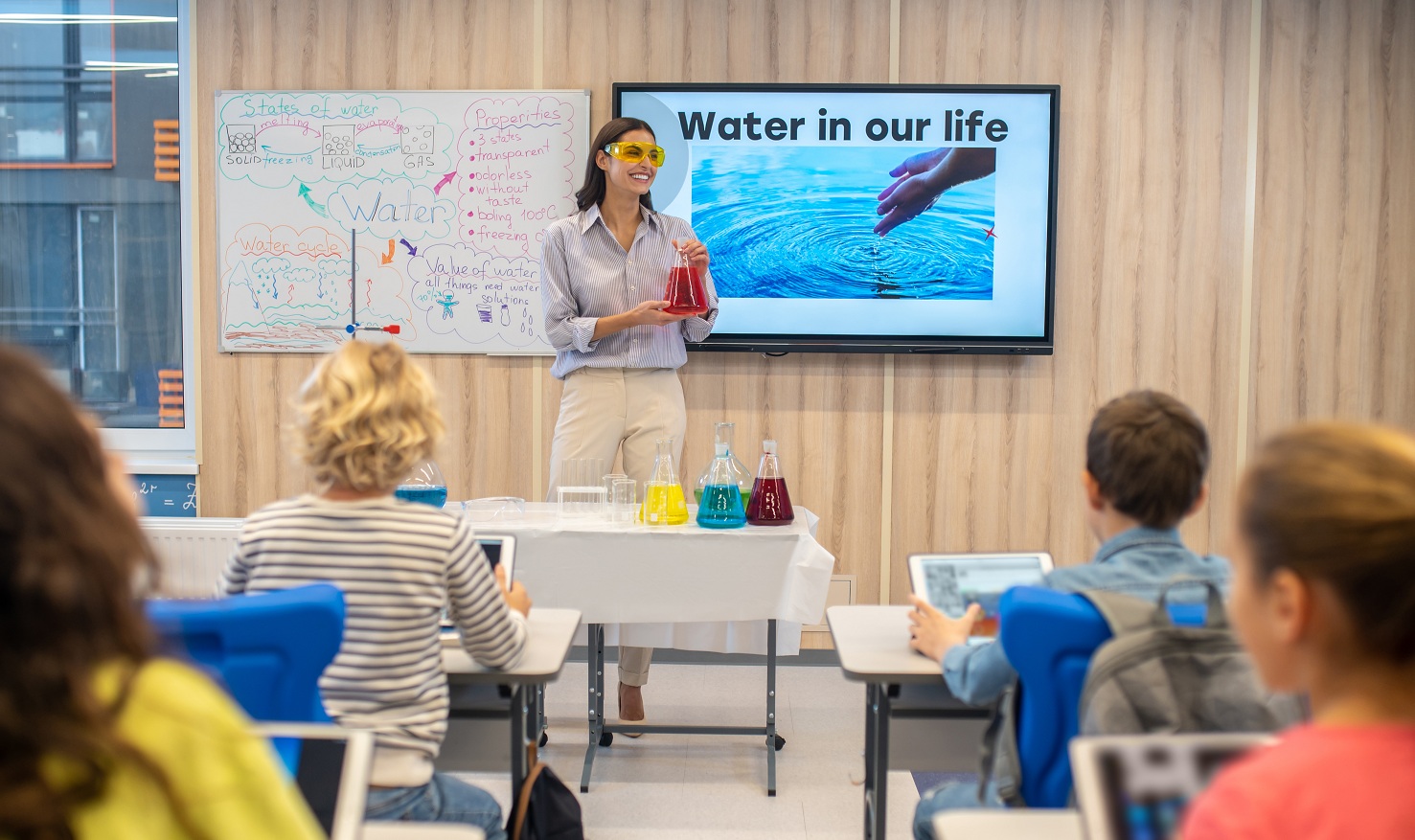 在传统课堂教学的班级授课中,教学主要通过书本的文字图片、老师的讲解进行知识输送,教学模式单一,课堂缺乏生动性和主动参与的积极性。而k8凯发构建的数字化教学环境中,通过电子白板的应用,用“沉浸式+体验式”的教学方式,趣味性且可视化的展示课程内容,将传统的教室升级为更为智能的数字化“教学空间”,从而推动教学模式的数字化变革。