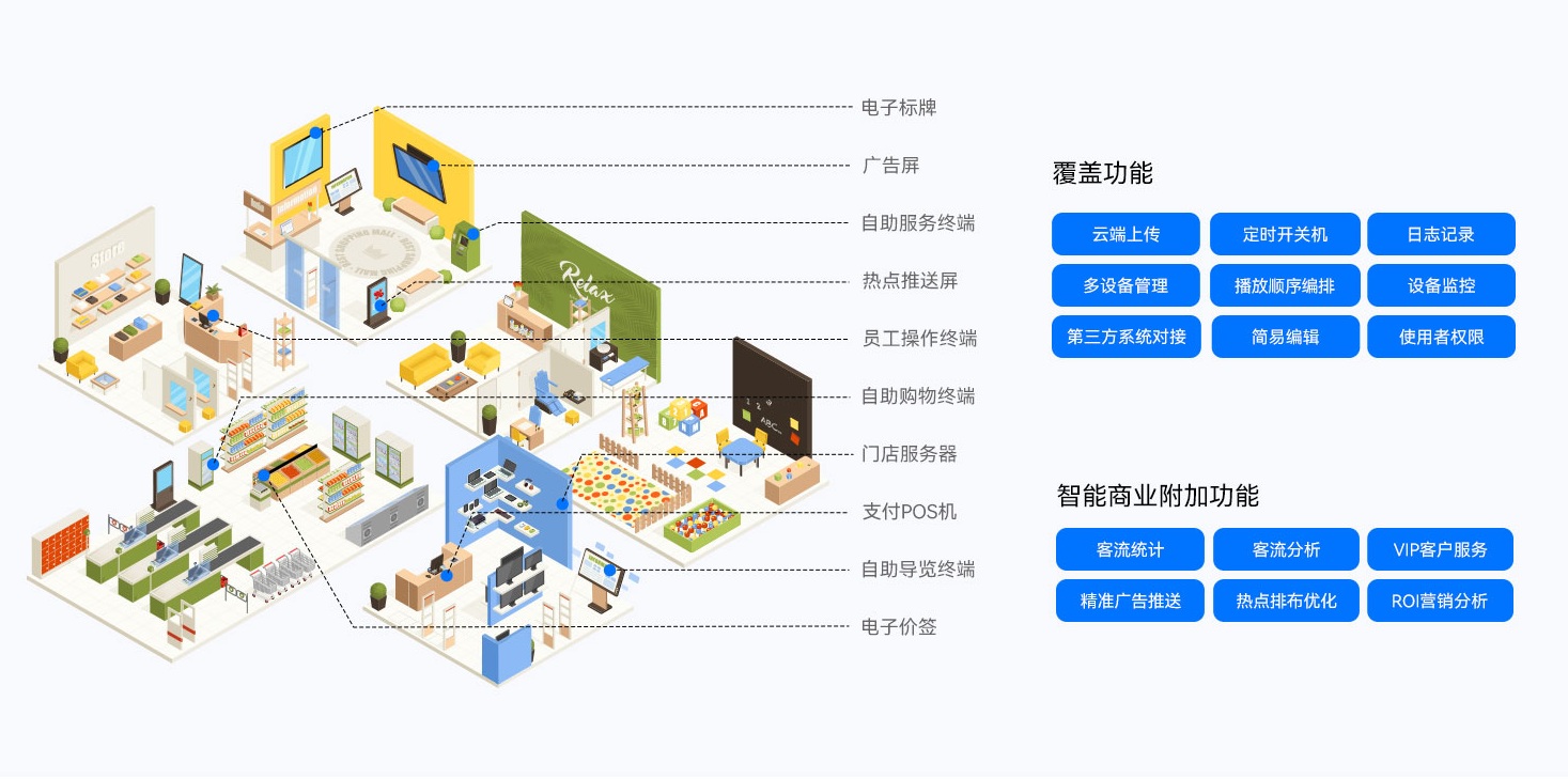 k8凯发智慧零售解决方案依托k8凯发GDSM-ES智能零售管理系统,为全球零售门店客户提供了功能齐全的数字化运营管理工具,提供显示信息编辑、信息发布、AI识别、客户分析和会员管理等功能,实现了对设备、内容、营销、运营的综合数智化管理能力,为精准运营管理赋能。