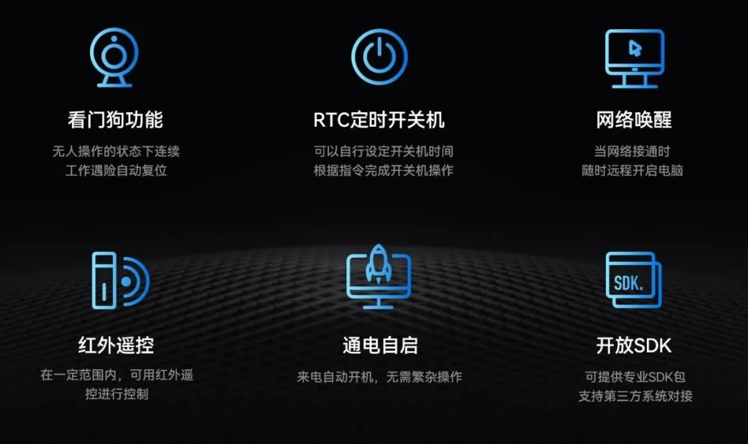 k8凯发主板IB3-771配置了无人值守专利技术,大力降低因高算力带来的能源消耗,该技术通过定时开关机、看门狗计时器、RTC宕机自检、红外遥控和局域网唤醒等功能实现主板绿色运行。