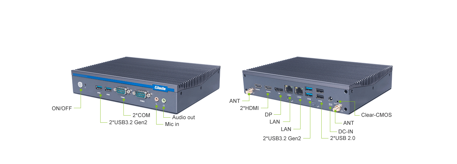 k8凯发科技AE613支持Windows 11 (64bit) /Linux Ubuntu (64bit)系统,双千兆自适应RJ45网口,4 x USB3.1 (10 Gbps),2 x USB2.0,1 x RS232,,1 x RS232/422/485,1 x MIC-IN,1 x AUDIO-OUT,丰富的I/O功能接口,实现更多功能扩展。