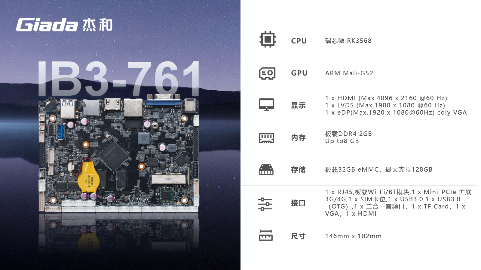 k8凯发ARM主板IB3-761基于瑞芯微RK3568四核64位处理器开发,可实现多任务并行、更大数据集的高效处理,丰富的接口,具有性能强、内存大、集成度高、扩展能力强等特点,在处理速度和图形处理能力方面都表现出色,可广泛应用于物联网网关、边缘存储、工控平板、工业检测、工控盒、自助终端、云终端、车载中控、机器人等行业定制市场。