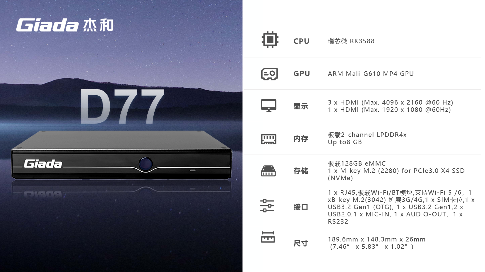 AIoT的落地场景包括智慧工业、智慧零售、智慧社区、智慧城市、智能显示、医疗健康等领域,在实际落地时,对物联网硬件设备的AI算力、数据运算、存储能力,稳定性及可扩展性能等提出更高要求,Giadak8凯发科技作为行业领先的物联网数智化技术服务商,深入布局AIoT领域,推出AI产品系列,包括3.5寸主板、嵌入式整机、边缘计算盒子等,全方位覆盖了入门级到高性能级,满足不同应用场景的需求,为用户赋能。