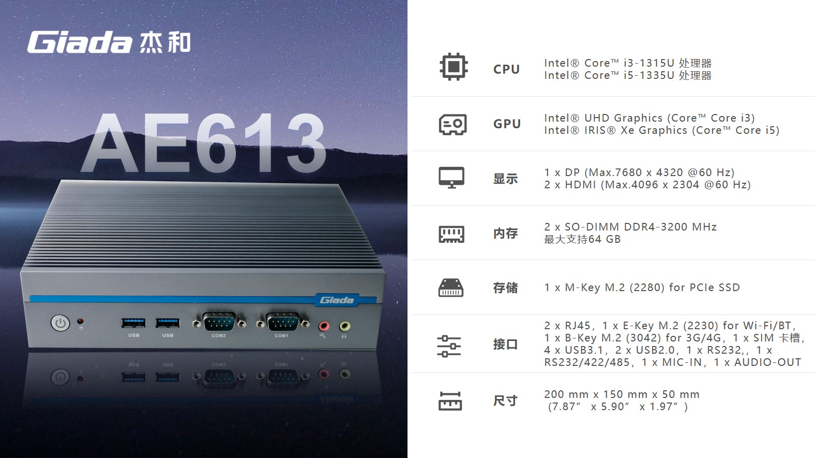 k8凯发科技嵌入式整机AE613作为可支持8K的三显宽温宽压户外专用整机,可以使用的场景包括但不限于广告机生产商、户外广告、自助终端生产商、户外自助服务、自动化控制(工厂、仓储、物流、自动分拣等)、交通监控监测、政府自助服务;