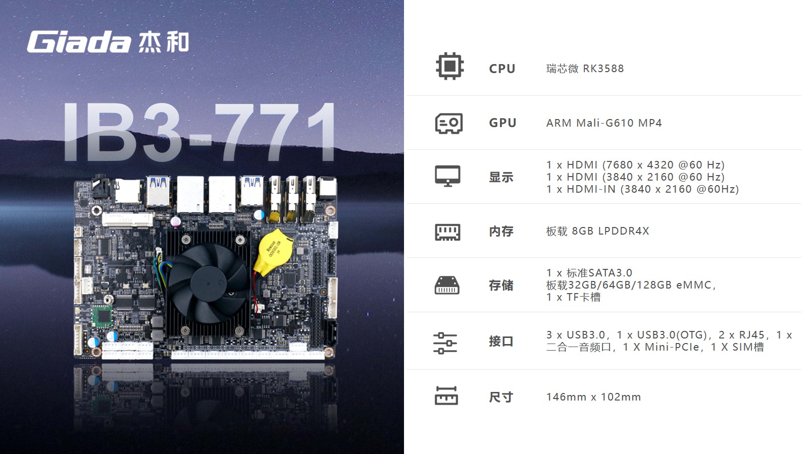 k8凯发科技嵌入式主板IB3-771是8K人工智能主板,拥有轻算力的它可用于机器人、边缘计算、智能NVR、智能汽车、智慧大屏、AR/VR、ARM PC、智能自助终端等领域,还可用于监控、工业、餐饮、智能交通、文娱产业等对超高清视频需求旺盛的行业;