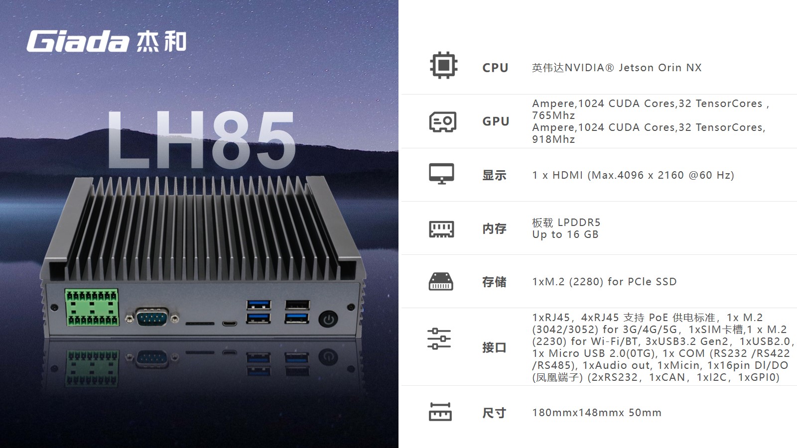 k8凯发科技AI边缘计算LH85,拥有100TOPS超强算力,能为工业控制领域客户的AI应用提供强大的算力支持和充足的通信、控制接口保障,可广泛应用于智能制造、机器视觉、AGV、智慧城市等领域。