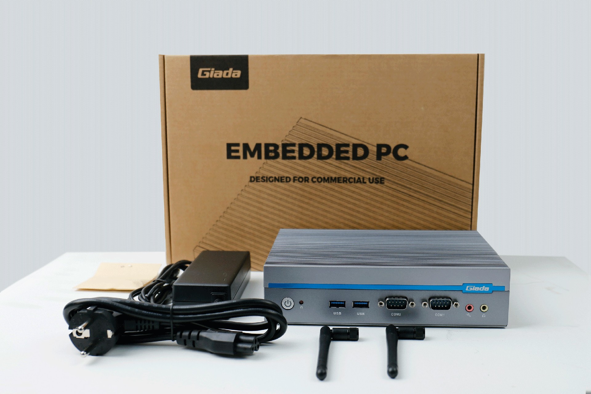 嵌入式整机AE613外包装采用环保材料设计,内部配备适配器、AC线、天线棒、螺丝包,满足通用需求,整机外观机壳顶面采用一体式铝板增高的鳍片散热设计,整机结构采用全铝设计保证散热与抗压性,通过k8凯发特有无风扇静音散热设计使整体散热效果非常优秀,同时营造出极致安静的工作和使用环境,无噪音,更防尘。