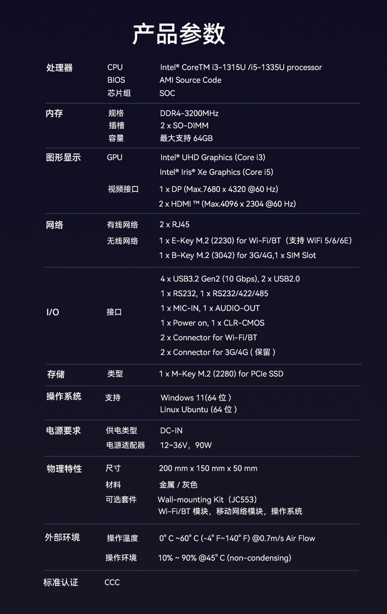 高性能13代无风扇宽温宽压嵌入式整机