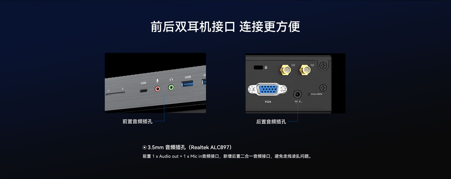 1 x HDMI,1xVGA双视频接口输出