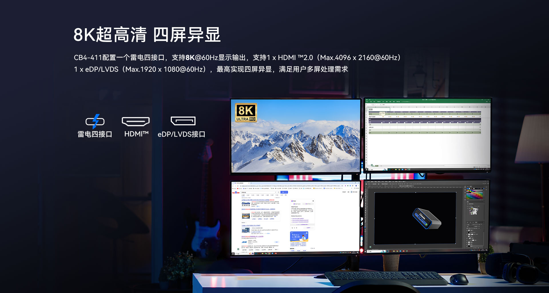 1 x雷电4 (Max 7680 x4320 @60 Hz)