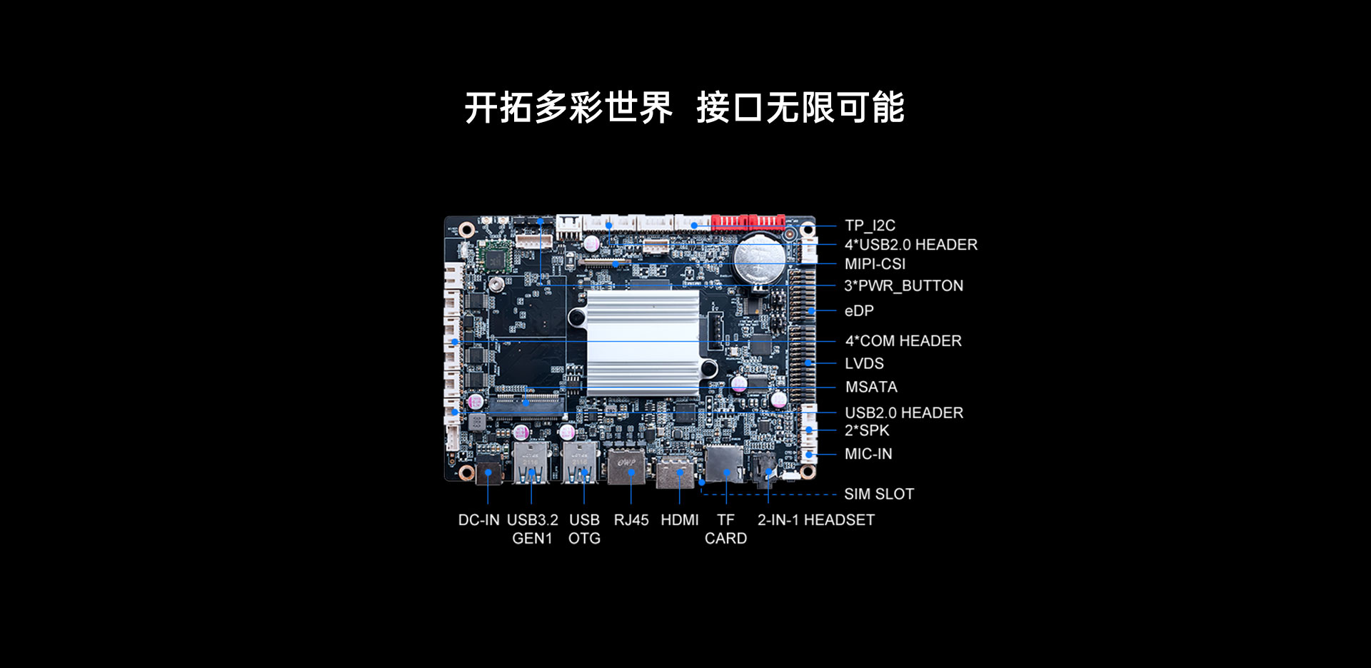 HDMI视频接口输出,1×30pin LVDS视频信号插针 1*eDP